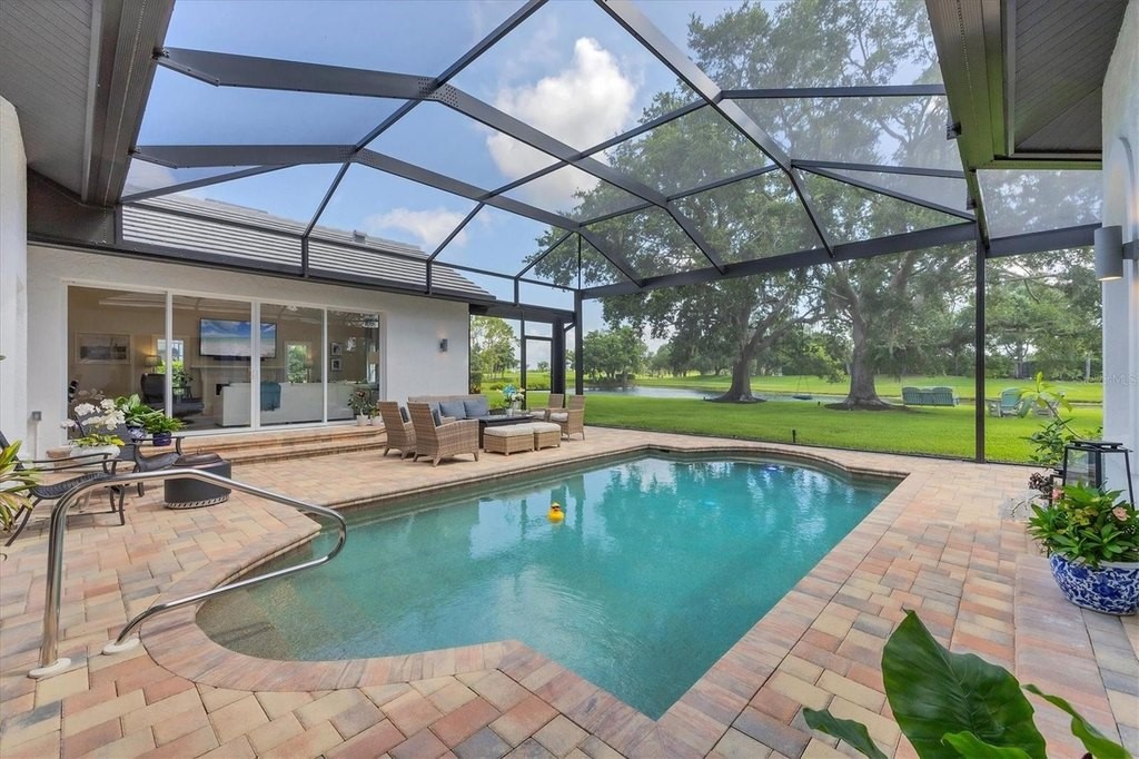 Luxury estate in Laurel Oak Country Club Estates, one of Sarasotas most prestigious 24/7 guard-gated golf communities with two championship 18-hole courses. Renovated and positioned competitively against homes requiring updates, this exceptional custom residence offers privacy with tranquil waterfront viewsnot directly on the golf course or cart pathset on a peaceful half-acre lot framed by mature oaks and palms. This 4-bedroom, 4-bath home offers over 4, 125 sq ft of refined living, blending architectural character with modern design. Fresh interior paint and thoughtful updates enhance the abundant natural light throughout. The stunning 2024 kitchen renovation features custom cabinetry, Caf high-end appliances, quartz countertops, Brizo touch faucet, instant hot water, under-counter filtration, spacious pantry, and Lutron-controlled cabinet lighting, perfect for both everyday living and entertaining. The expansive primary suite is a private retreat with pool and water views, two walk-in closets, and a spa-like bath with freestanding soaking tub, oversized shower, and dual vanities. Three generously sized guest bedrooms provide comfort and privacy for family and visitors. Designed for seamless indoor-outdoor living, nearly every room enjoys views of the heated pool. The oversized lanai features a panoramic screen overlooking the lake and an outdoor kitchen with Lynx built-in grill, beverage cooler, custom cabinetry, and quartz counters, plus a dedicated pool bath for effortless entertaining. Additional features include smart home technology, 2022 roof, Tesla charger, and modern systems for peace of mind. Laurel Oak offers golf, tennis, pickleball, junior Olympic pool, clubhouse, and reciprocal privileges with Bird Key Yacht Club. Membership available but not required. A rare opportunity for luxury living in Sarasota.